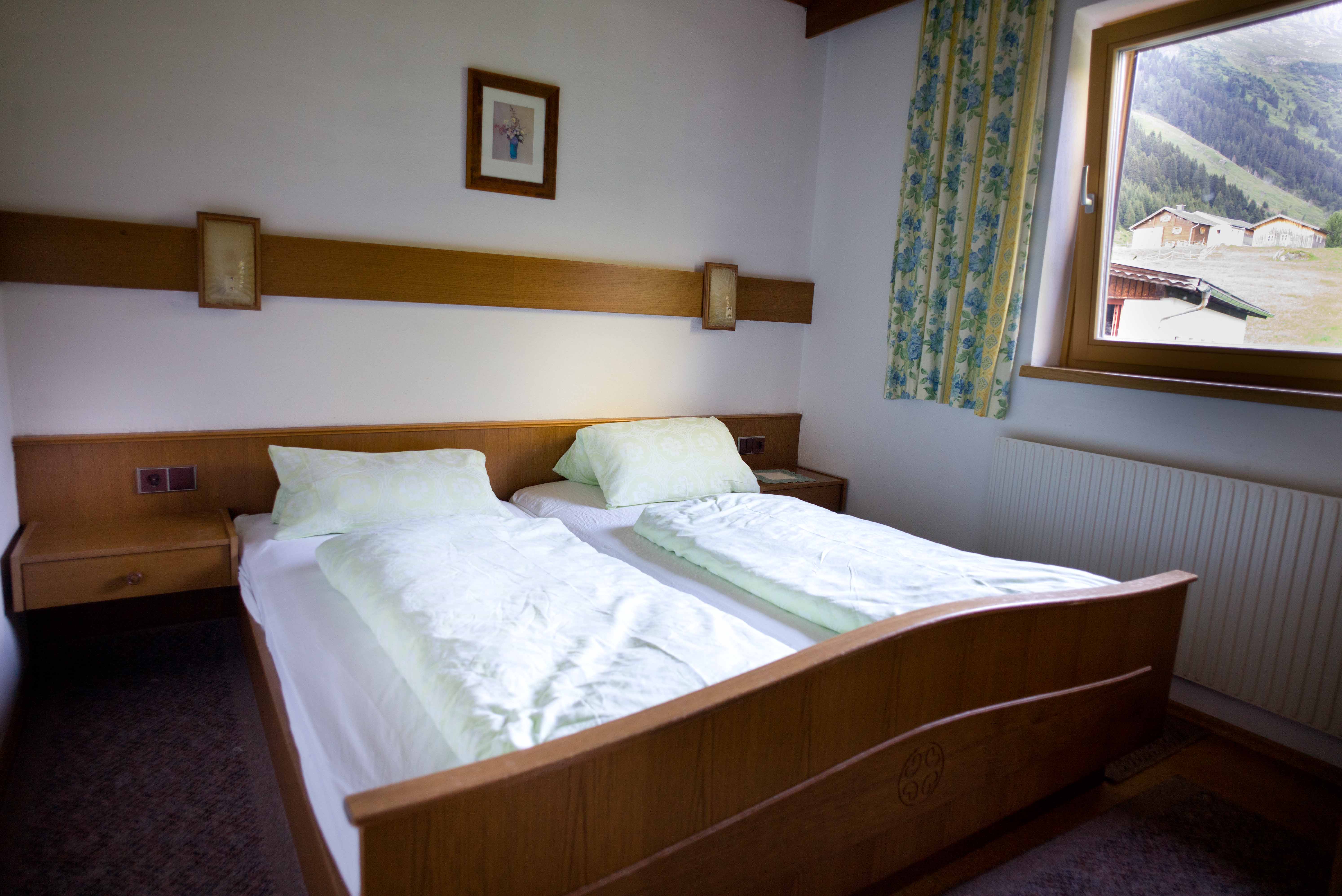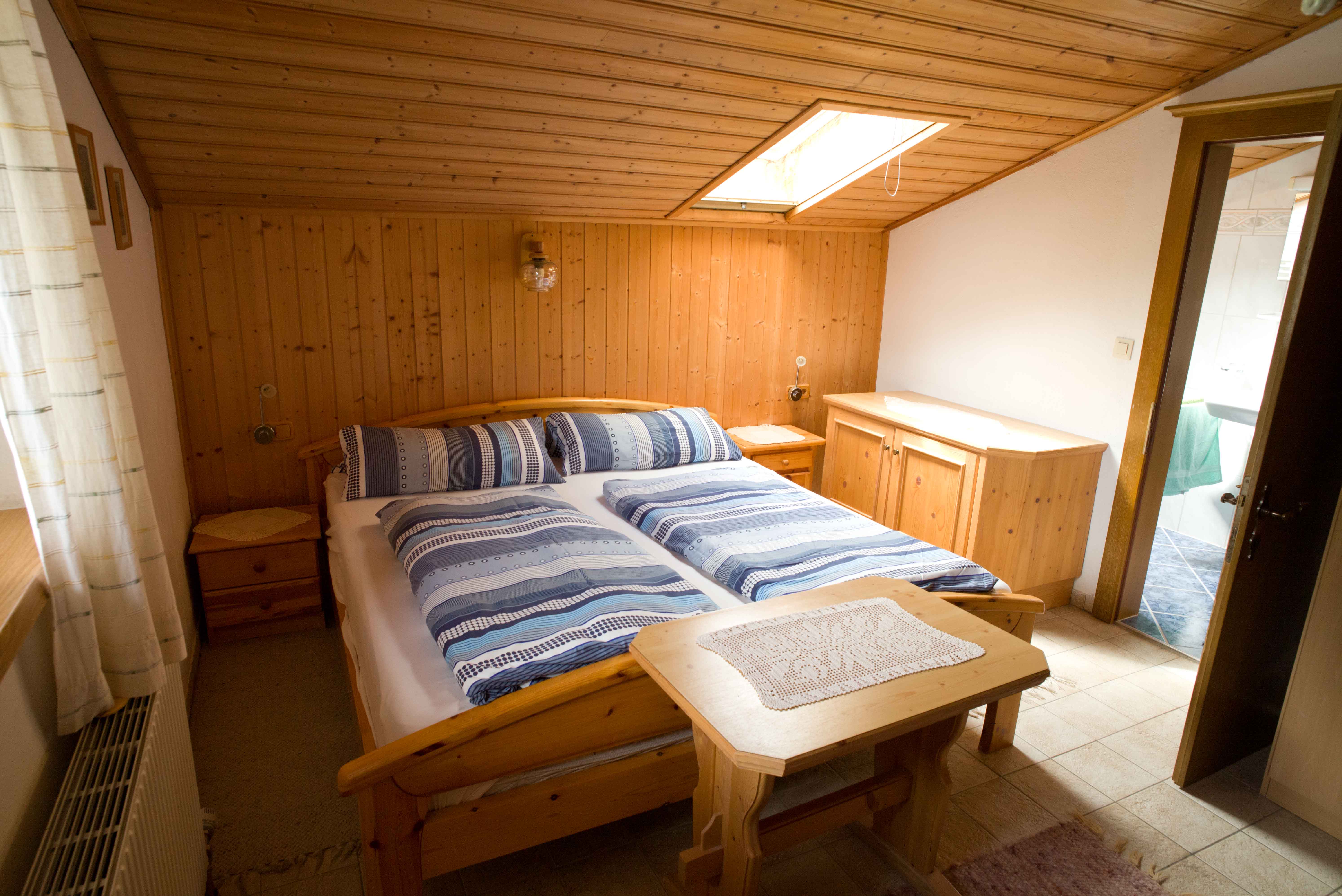 Zirben-Doppelzimmer mit Doppelbett und folgender Ausstattung: Zweckmässig ausgestattete neue Küche mit Granitabdeckung, Backofen und Kaffeemaschine (Filter) Wohn-/Essbereich mit Doppelschlafcouch sowie Tisch mit vier Stühlen TV, Internet/WLAN, Badezimmer (mit Dusche, Waschbecken, Föhn), separates WC